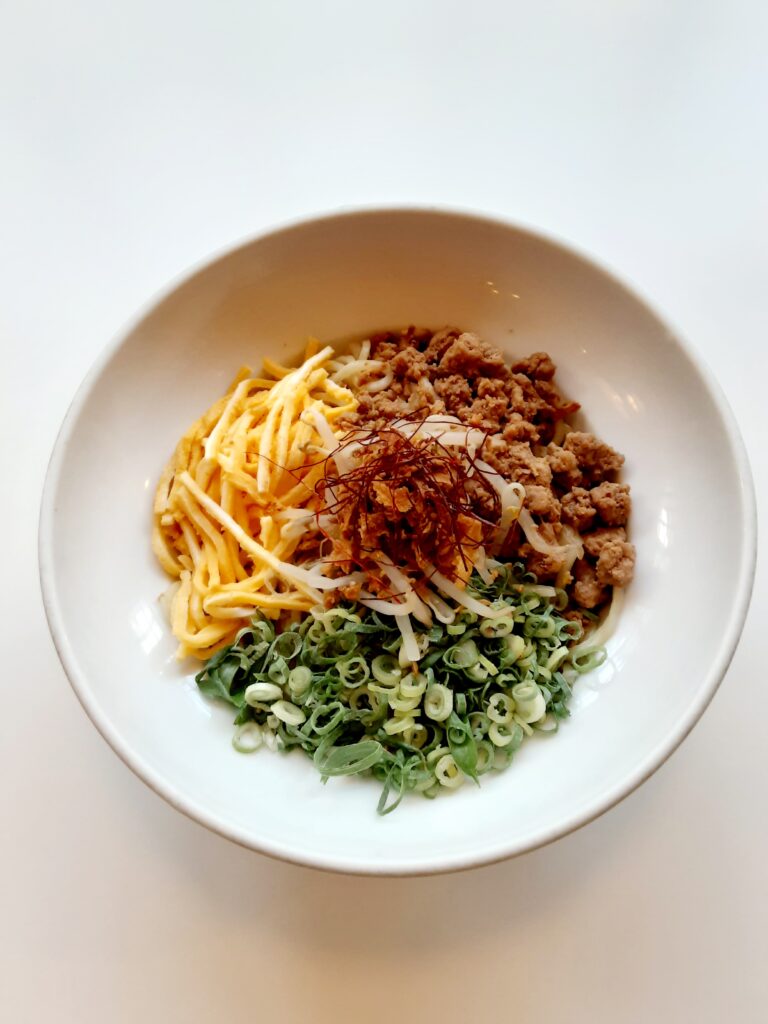 食べる前に麺を全体的によく混ぜて(麺を下から上に持ち上げるように)タレによく絡ませてからお召し上がりください。