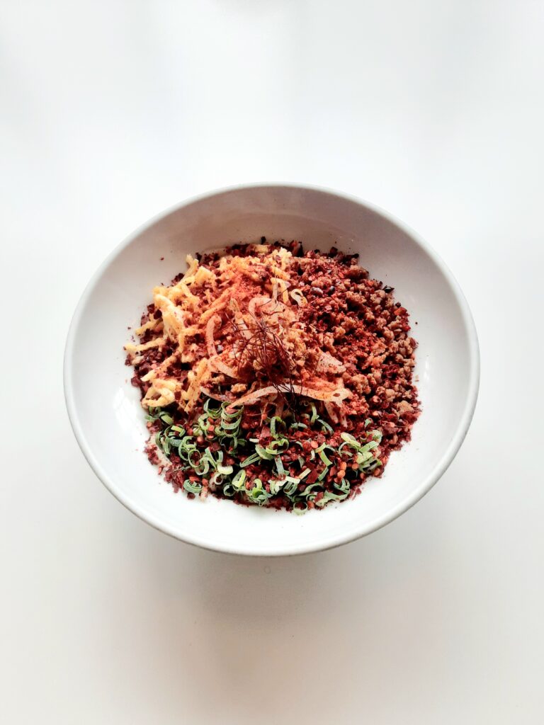 鬼が赤くなるような辛さは怖いわ、という方は特製まぜそばにテーブル上の唐辛子パウダーを1袋ずつ加えてお試しください。ちょうどいい辛さ加減が見つかるはずです。